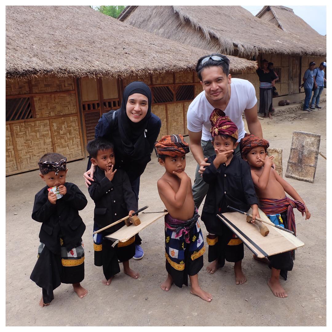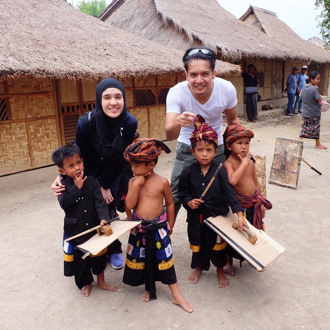 Pasangan pesinetron itu berfoto dengan anak-anak Sasak Ende, hingga didoakan netter segera memiliki momongan.