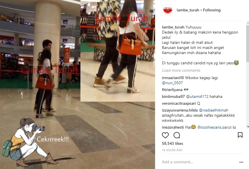 Kali ini, keduanya lagi-lagi membuat heboh publik usai kepergok hangout hanya berdua. Hal tersebut diketahui melalui postingan akun gosip @lambe_turah baru-baru ini. "Yuhuuuu Dedek ily & babang makcim kena hengpon jadul Lagi halan halan di mall alsut Barusan banget loh ini masih anget Kemungkinan msh disana hahaha," tulis akun gosip tersebut dalam keterangan postingannya, Jumat, 17 November.