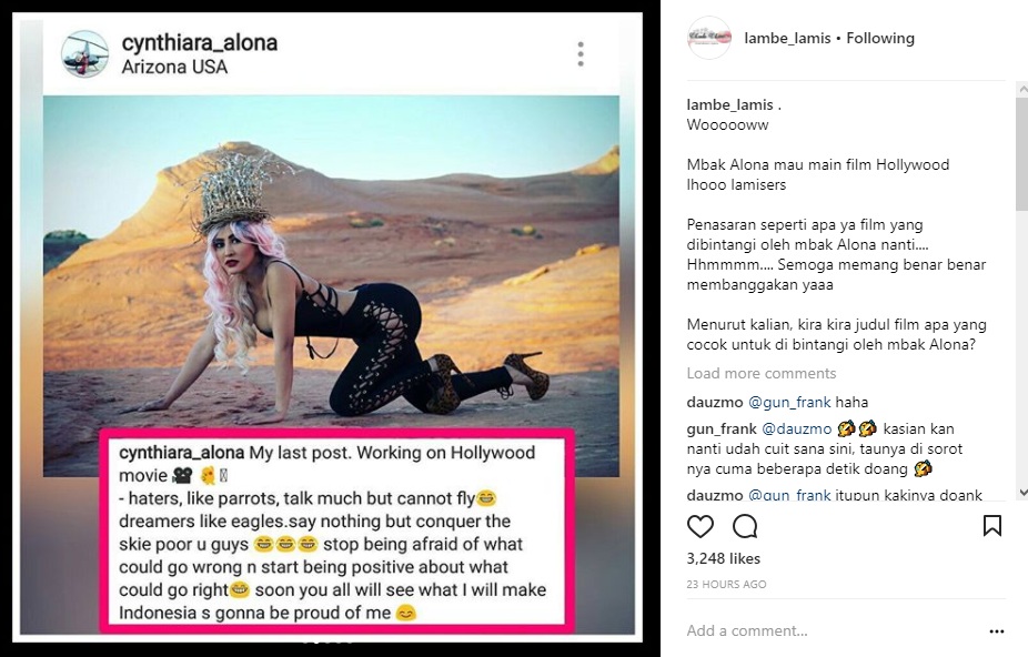 Sontak, postingan yang diunggah ulang oleh akun gosip @lambe_lamis itu pun menuai berbagai komentar. Alih-alih bersimpati, tak sedikit netizen justru melayangkan cibiran pada Alona.