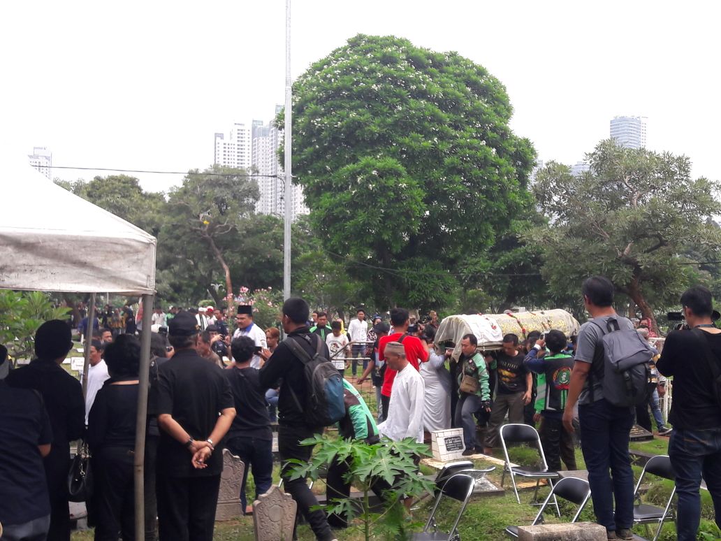 Para rombongan driver ojek online tampak mengawal Laila Sari hingga liang lahat. Demi solidaritas serta tanpa paksaan, salah satu komunitas ojek online se- Jabodetabek rela datang jauh dari Bekasi untuk mengantarkan Laila di tempat peristirahatan terakhirnya.