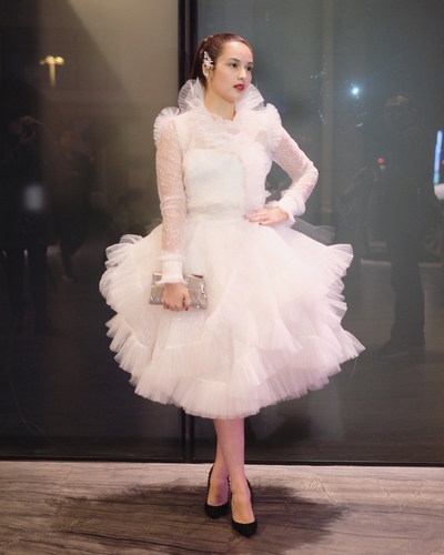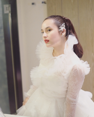 Chelsea sendiri hadir kesana dengan pesona luar biasa. Gaun putih rancangan Ashi Studio yang ia kenakan nampak begitu elegan bukan?