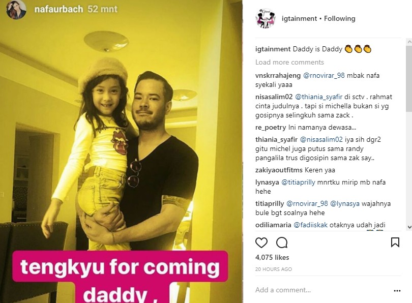 Melalui postingan yang diunggah ulang oleh akun gosip @igtainment, terlihat Zack Lee menggendong sang buah hati. Baik Zack Lee maupun Mikhaela tampak tersenyum lebar ke arah kamera. Bahkan, siapa sangka jika Nafa masih memanggil Zack Lee dengan sebutan "daddy". "Tengkyu for coming, daddy," tulis Nafa dalam keterangan postingan di Instagram Story.