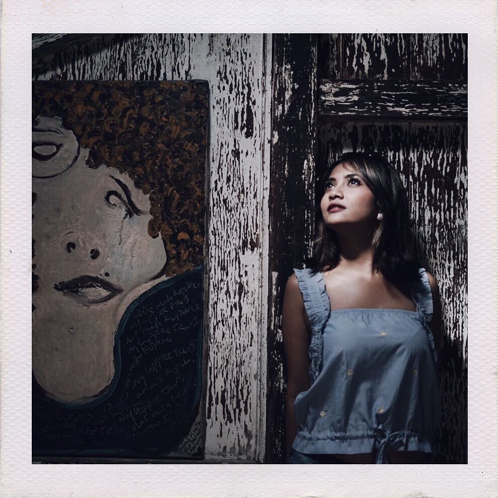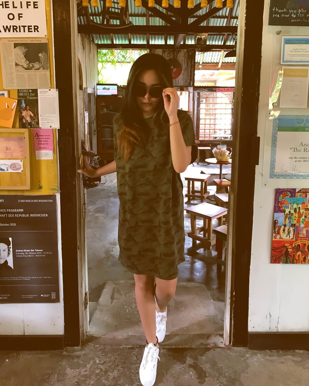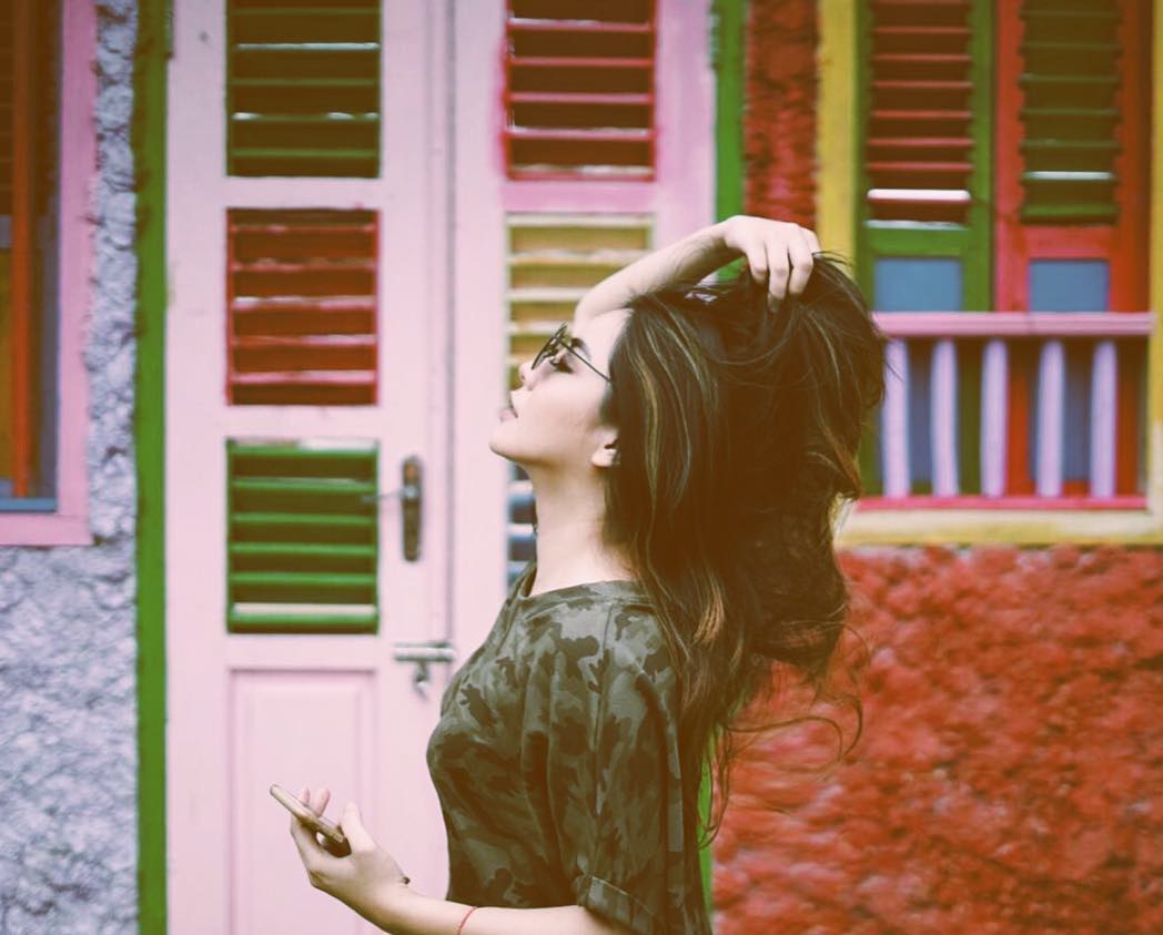 Gita Sinaga, tak mau kalah eksis dengan Vanessa dong! Ia berpose kece seperti ini dengan latar sebuah bangunan berwarna warni.
