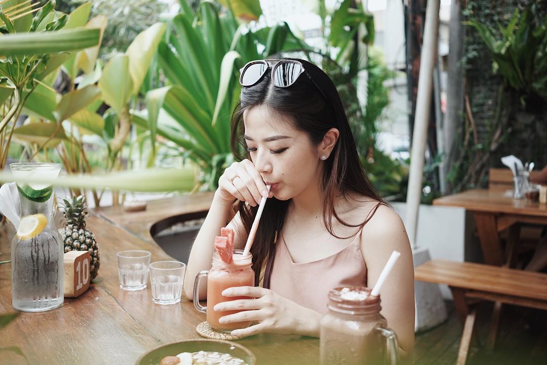 Tak ada pantai, pasangan ini memilih duduk bersama di sebuah kafe dan menikmati minuman cokelat mereka.
