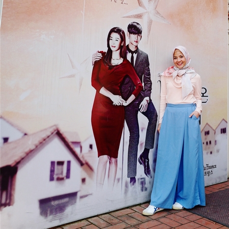 Ia bahkan 'berfoto' dengan pemeran utama drama terkenal itu, Jun Ji Hyun dan Kim Soo Hyun, meskipun hanya dalam bentuk poster.