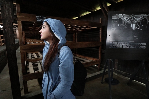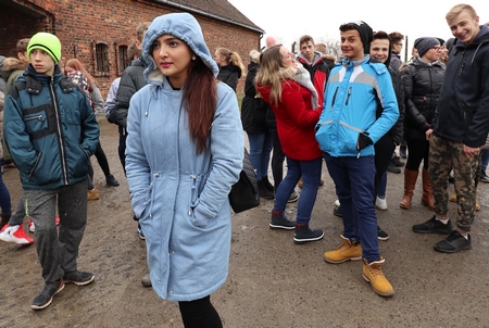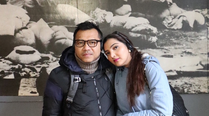 Cuaca yang dingin membuat Ashanty & Anang memakai jaket tebal ketika diajak berkeliling Auschwitz, yakni camp pembantaian yahudi selama perang dunia ke-2.