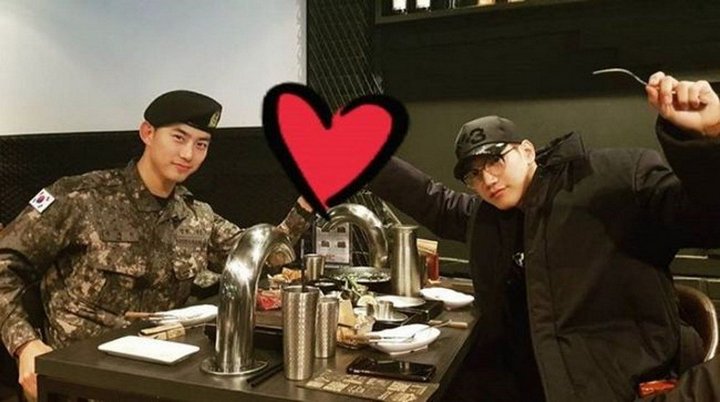 Salah satu teman akrab yang ditemui Taecyeon saat libur itu adalah Jun.K. Keduanya bertemu di sebuah tempat makan. Foto "reuni" mereka pun diunggah oleh Jun.K di akun sosial medianya. Jun.K memberi caption seperti ini untuk fotonya bersama Taecyeon, "Malam pertama Taecyeon keluar dari barak". Di foto tersebut, Taecyeon terlihat masih sedang memakai seragam militernya. Jun.K sendiri terlihat melingkarkan tangannya membentuk sebuah hati.