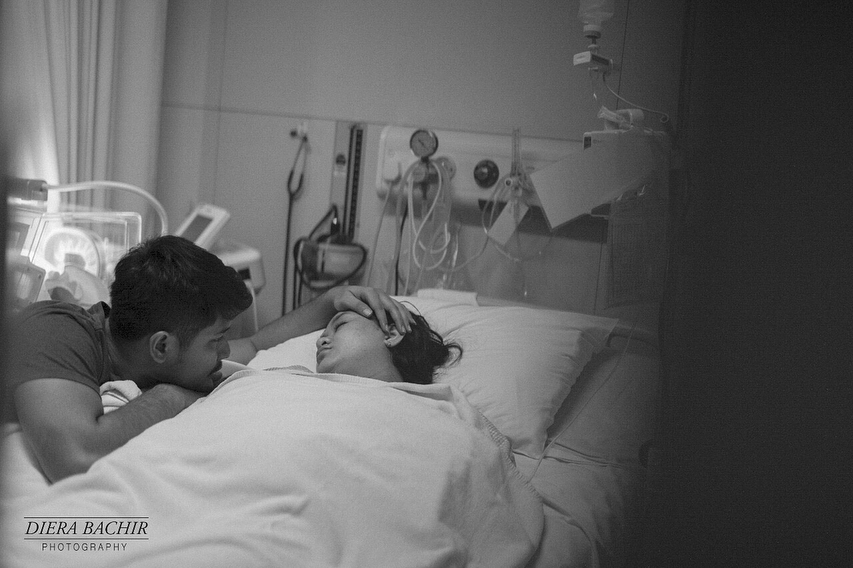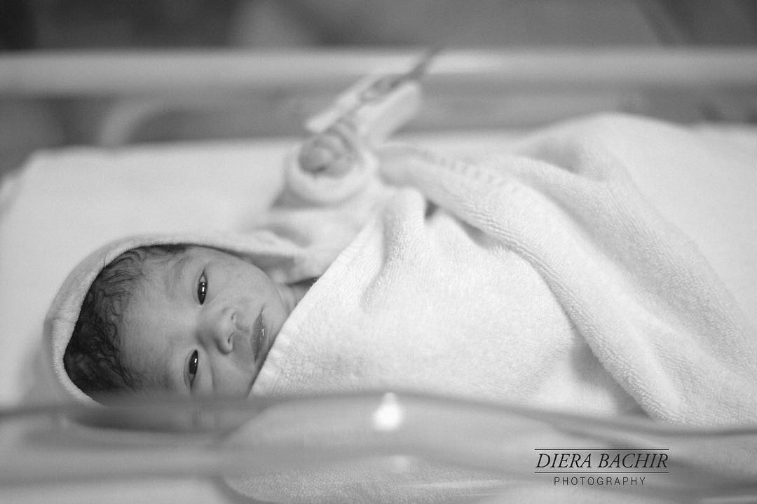 Tak mau ketinggalan momen, fotografer Diera Bachir diminta untuk mengabadikan proses lahirnya baby Qiandra ke dunia dalam potret hitam putih.