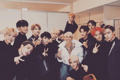 Ajang MAMA 2017 itu memberikan Agnes kesempatan untuk bisa berfoto bersama boyband Korea Selatan Seventeen.