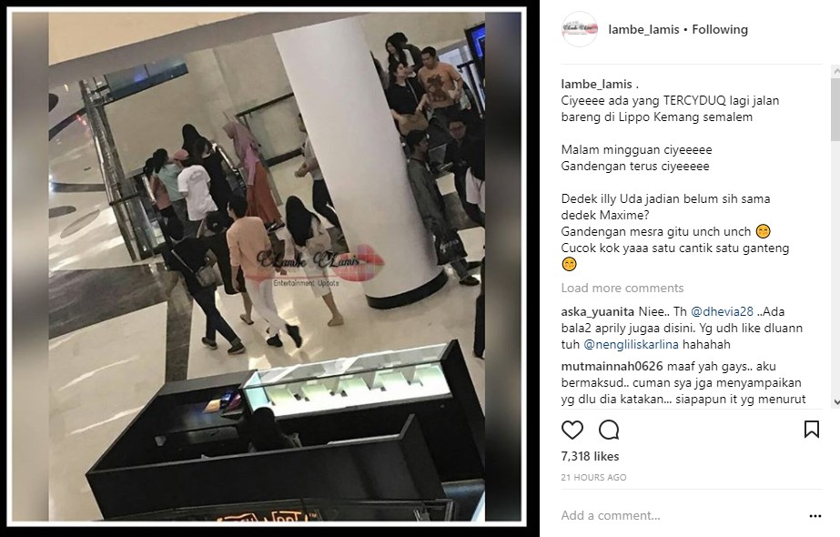 Seakan harapan para penggemar terjawab, baru-baru ini Prilly dan Maxime kembali kepergok jalan berdua di salah satu pusat perbelanjaan. Tak hanya sekedar jalan berdua, keduanya bahkan bergandengan tangan. "Ciyeeee ada yang TERCYDUQ lagi jalan bareng di Lippo Kemang semalem Malam mingguan ciyeeeee Gandengan terus ciyeeeee Dedek illy Uda jadian belum sih sama dedek Maxime? Gandengan mesra gitu unch unch Cucok kok yaaa satu cantik satu ganteng," tulis akun gosip @lambe_lamis dalam keterangan postingannya, Minggu, 26 November.