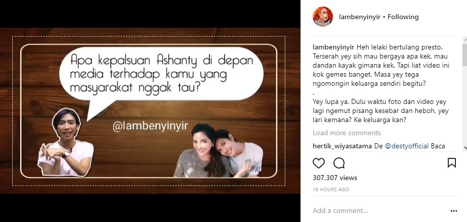 "Klw ga ada @ashanty_ash juga die ga ada apa2 nya. Cuma jadi bencong pinggir jalan..hahahah duh julid gw jadi nyaa..hahahah.. maaf deh abis sebel," cibir @lad******1404. "Udah nyalahin kondrat kok sombong, belagu gk karuan, klo bkn karna bun ash jg mana ada yg peduli sm dia smp jd heboh kaya skrg," sindir @its*****02. "Smua tante yg waras klu punya ponakan kya gini jg bklan mrah kalee,,lgian klu ashanti ga baik g mngkin ank2 tiri nya pda syang bnget dan lngket sma dia," imbuh @momy_*****a. "Dasar Biji ketumbar gk tau diri. Diluar sana ngata2in keluarga sndiri Ntar klu kena masalah lgi pasti nyariin keluarga juga," timpal @d****ll.