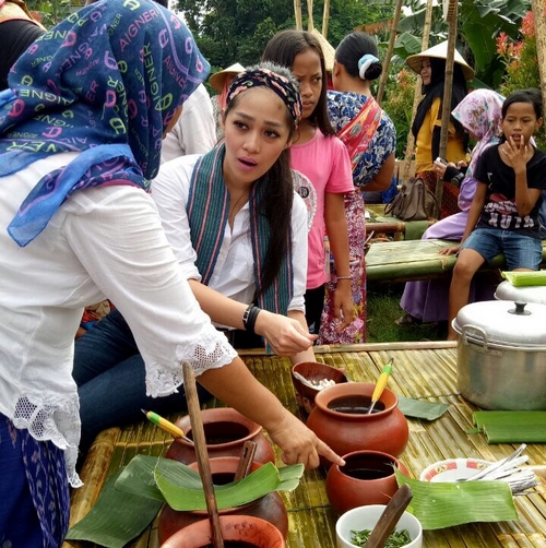 Gracia sendiri tak mau ketinggalan dengan acara seru yang digelar di Pasar Pancingan. Ia menikmati banyak makanan khas Lombok di sana.