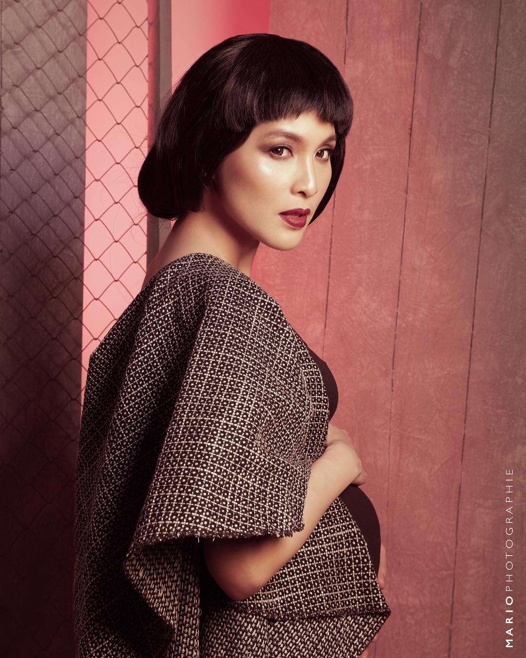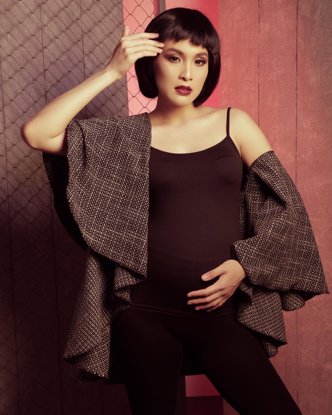 Ini potret kesekian maternity shoot ala Sandra Dewi. Ia tampil beda dengan rambut model mangkok.