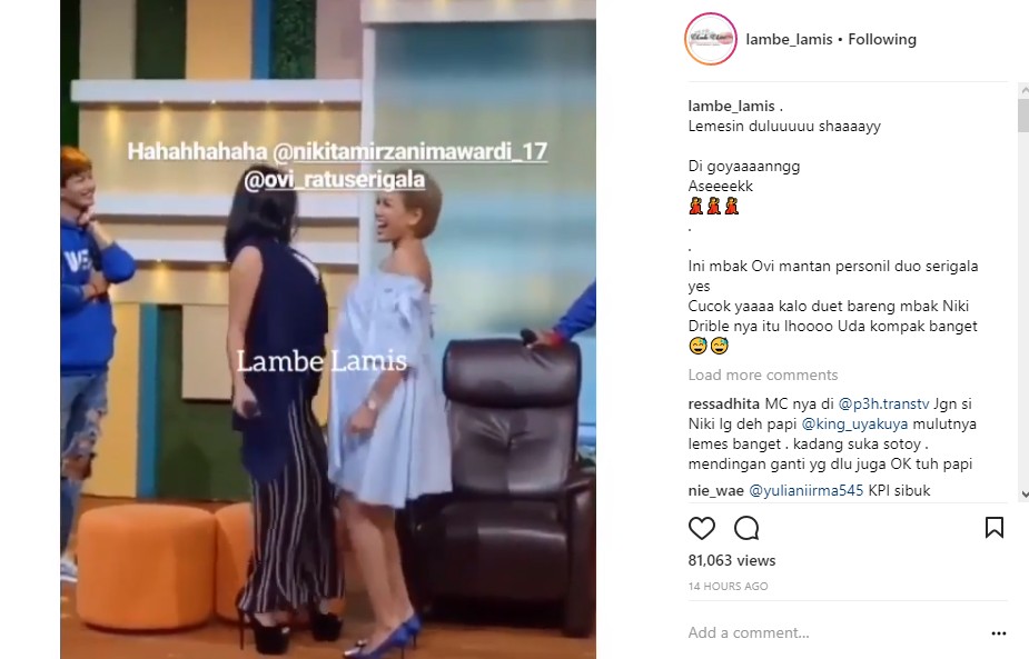 Sontak, postingan tersebut pun menuai berbagai komentar netizen. Alih-alih banjir pujian, aksi Nikita Mirzani dan Ovi itu justru mengundang cibiran netizen. Terlebih karena tayangan tersebut dikhawatirkan menjadi konsumsi masyarakat luas selain penonton di studio.