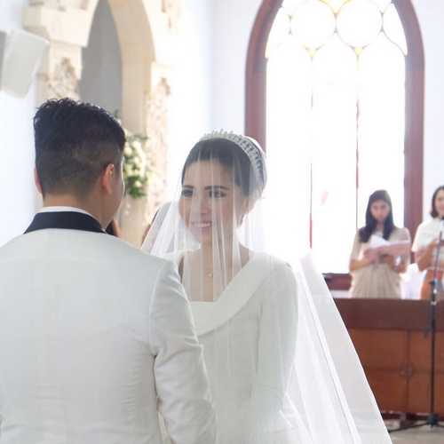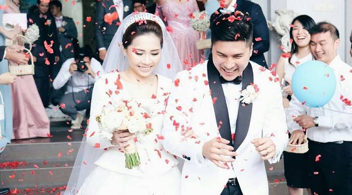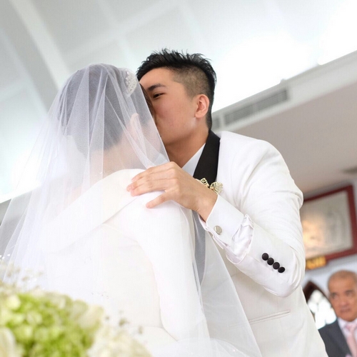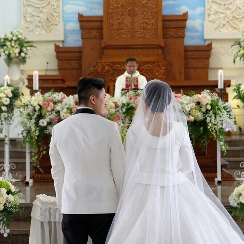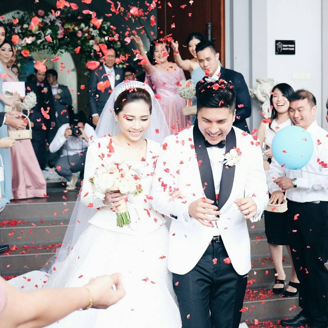 Keduanya mengundang sederet sahabat dan keluarga terdekat untuk hadir di pemberkatan mereka yang dilakukan di Gereja Khatolik Maria Bunda Segala Bangsa.