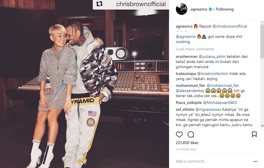 Kehebohan terjadi setelah musisi berkebangsaan Amerika Serikat yang juga mantan kekasih Rihanna itu mengunggah foto bersama Agnes Monica. Tak sampai disitu, Agnes pun mengunggah ulang postingan Chrish Brown di akun Instagram pribadinya. Bahkan, sebuah media online di Amerika pun sempat menduga jika Chris Brown tengah menjalin hubungan asmara dengan Agnes.