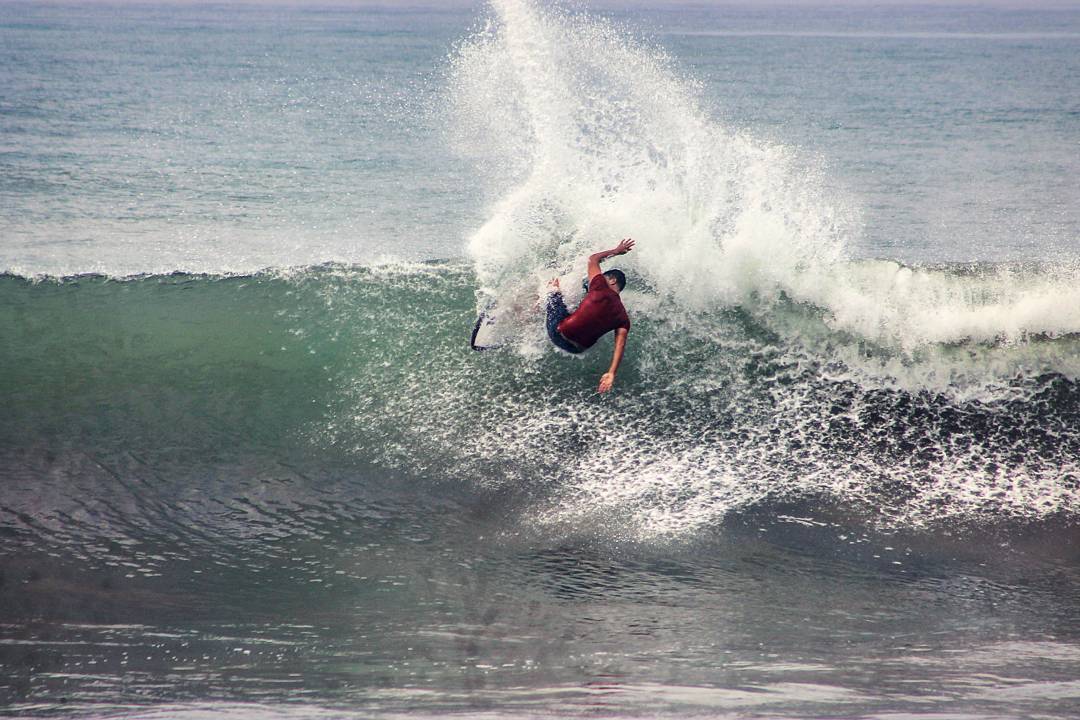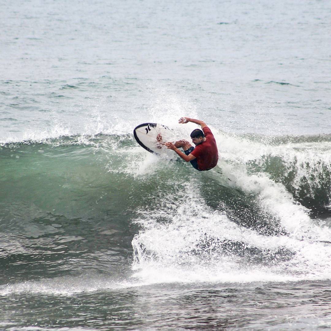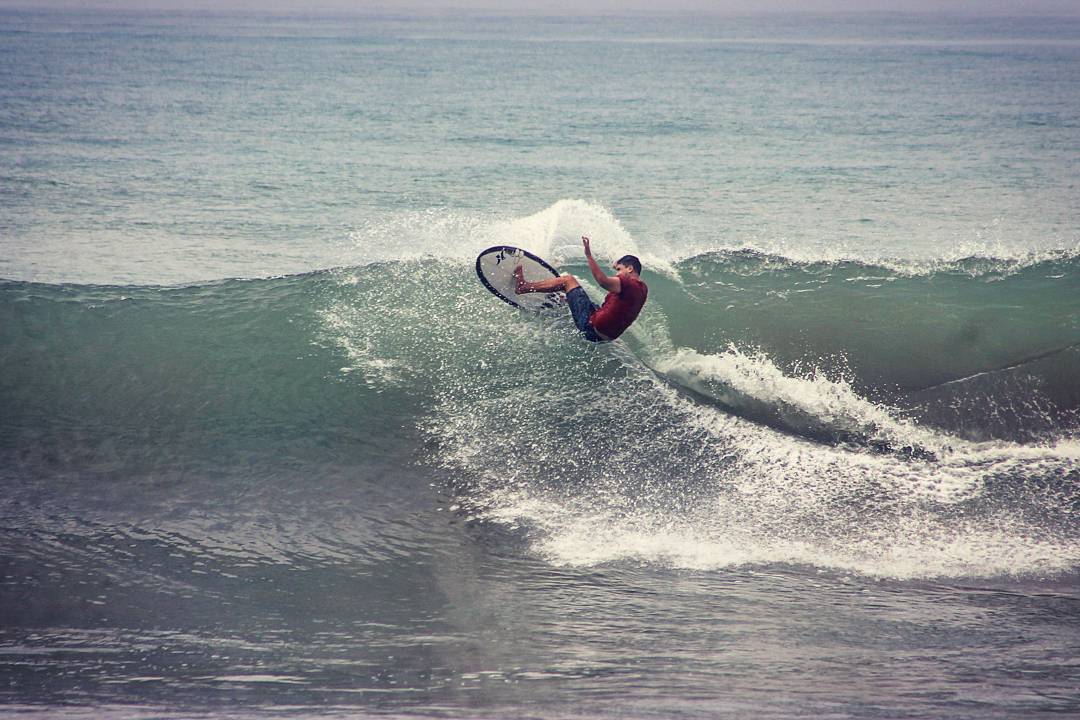 Dan beginilah gaya Hamish saat berselancar di laut kawasan Cisolok, Sukabumi. Keren banget kan?