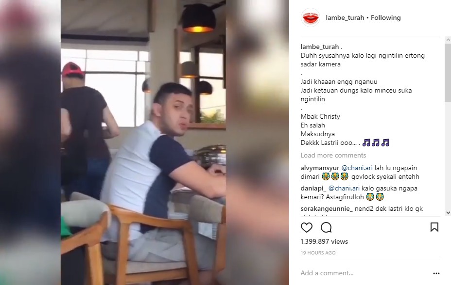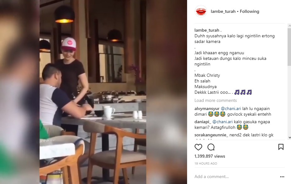 Keduanya tampil dengan balutan busana kasual. Tak hanya itu, Christy Jusung tampil dengan topi bernuansa merah putih. Seakan sadar kamera, secara tiba-tiba pria bule melihat ke arah sang perekam video. "Duhh syusahnya kalo lagi ngintilin ertong sadar kamera. Jadi khaaan engg nganuu Jadi ketauan dungs kalo minceu suka ngintilin. Mbak Christy Eh salah Maksudnya Dekkk Lastrii ooo..." tulis akun gosip @lambe_turah dalam keterangan postingannya.