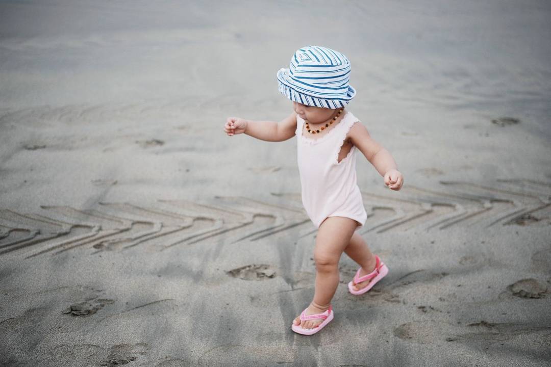 Namun balita berusia satu tahun itu sepertinya menyukai pasir putih yang ada di sana.