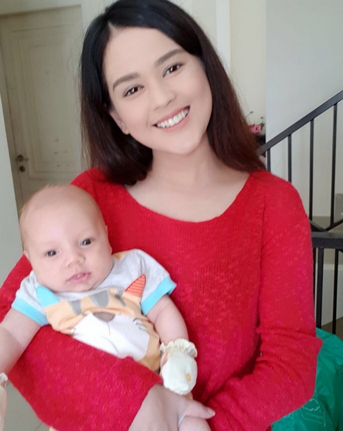 Celine Evangelista akhirnya merilis potret perdana anak ketiganya yang diberi nama Lucio Otthild William.