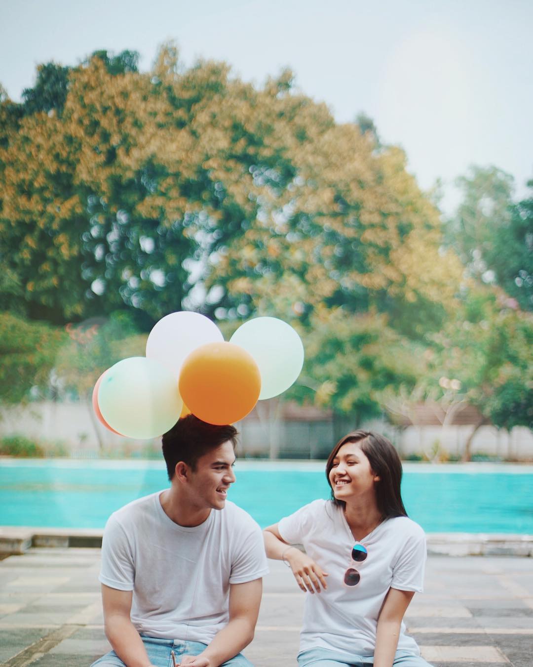 Mengambil tema warna-warna pastel, baik Rizky maupun Syifa nampak begitu serasi bukan?