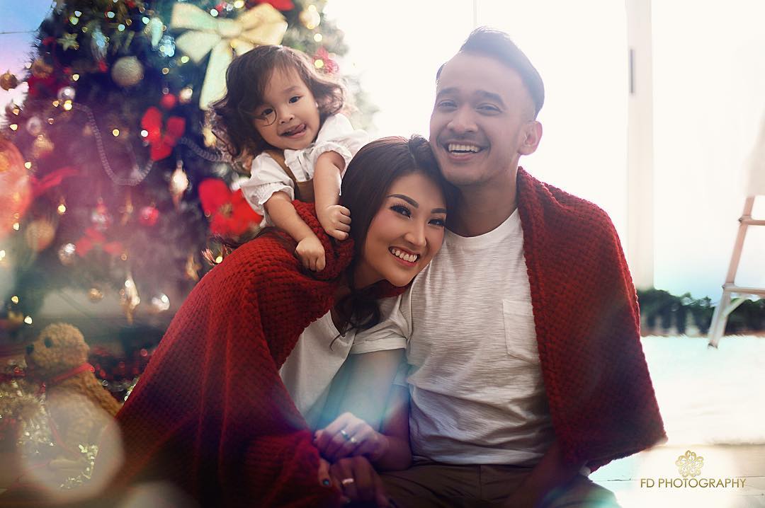 Ruben bersama keluarga kecilnya melakukan pemotretan bertema Natal yang sebentar lagi akan mereka rayakan.