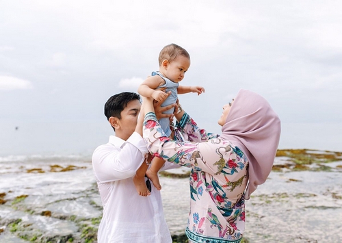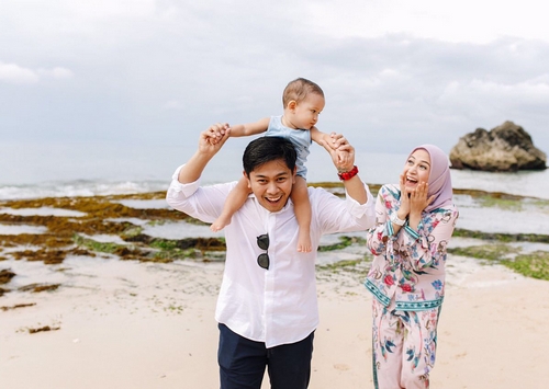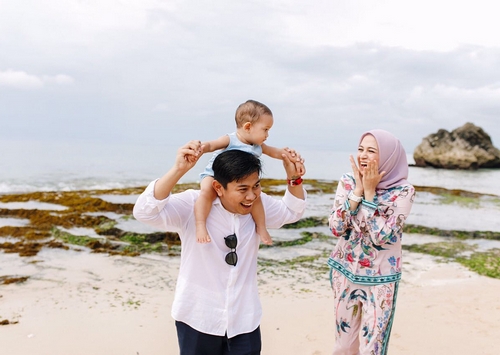 Seperti belum lama ini, dirinya bersama suami dan anaknya menghabiskan waktu di sebuah pantai. Ia nampak begitu girang dengan mengajak Kenzie berlarian. Seperti apa serunya?