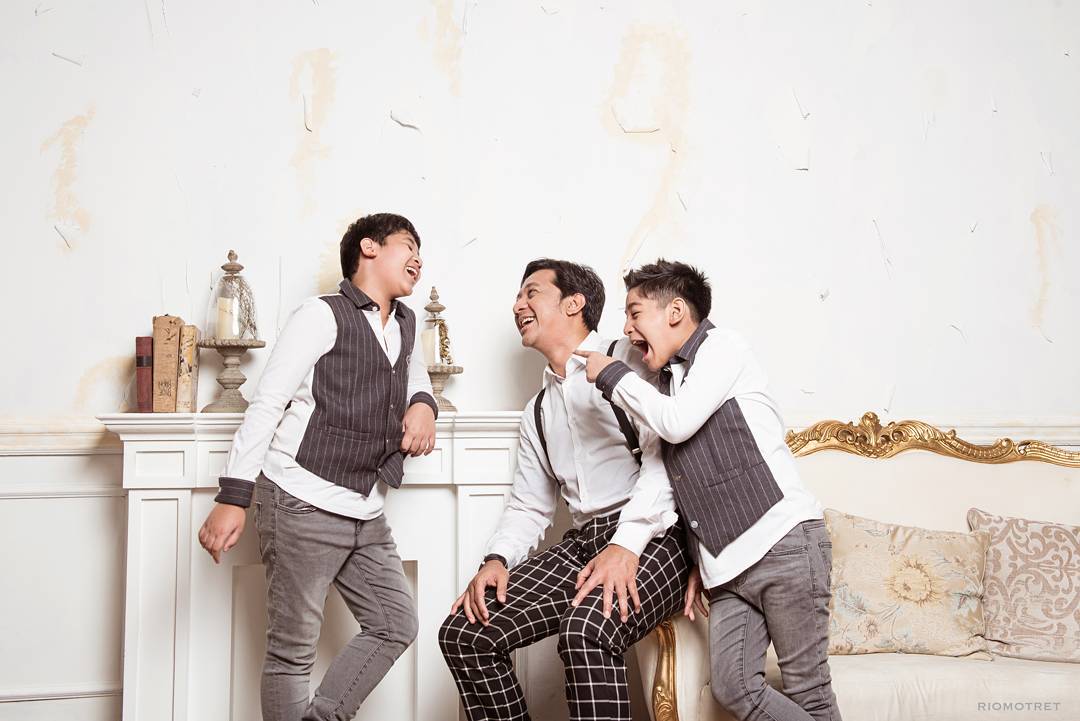 Para lelaki dari keluarga Taulany ini juga bisa kompak abis bukan? Kenakan busana senada, ayah & anak-anak ini benar-benar nampak akrab.
