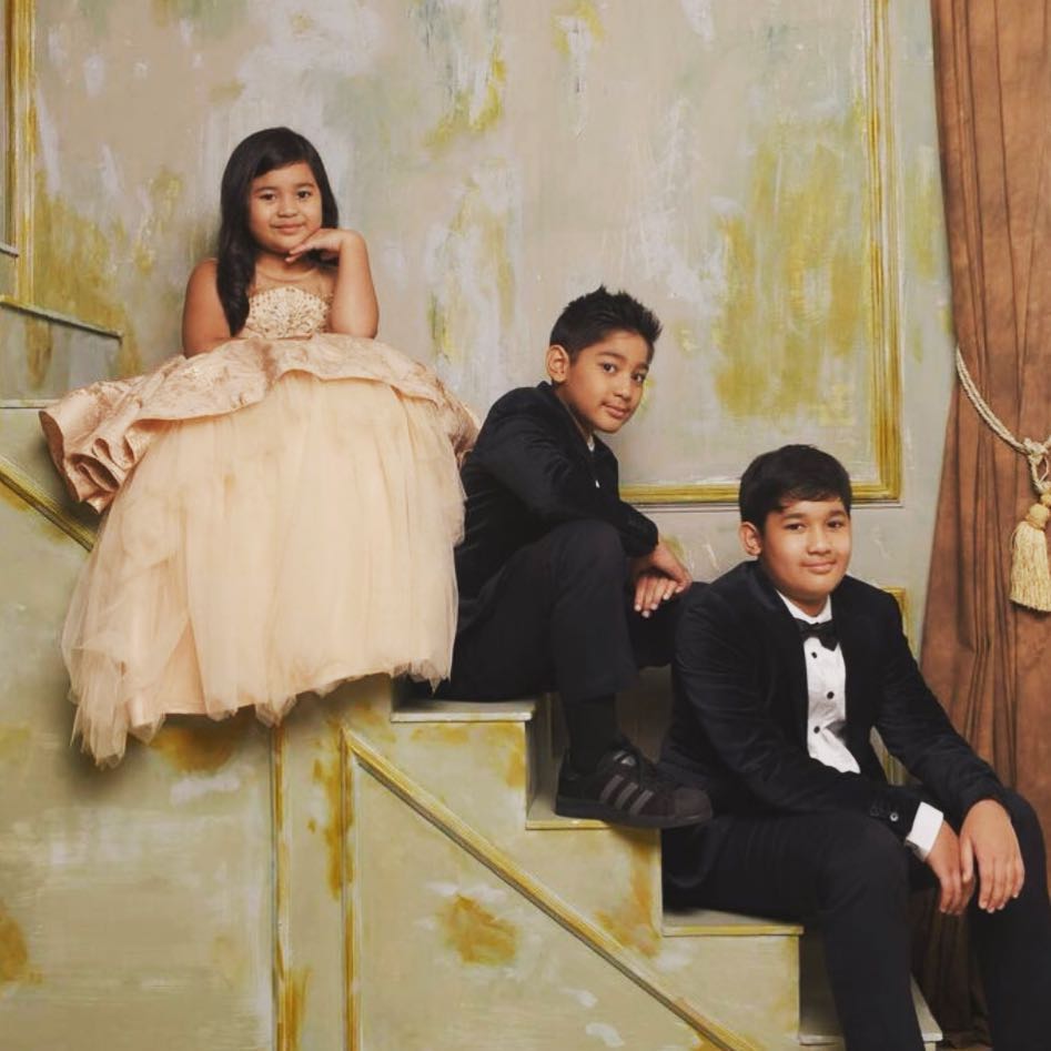 Ketiga anak Andre & Erin juga kompak dengan mengenakan jas berwarna hitam, sementara si bungsu mengenakan gaun senada sang bunda.