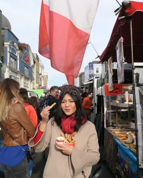 Di Portobello Road, perempuan yang akrab disapa Caca ini kegirangan dengan barang-barang lucu dan makanan enak yang disediakan di sana.
