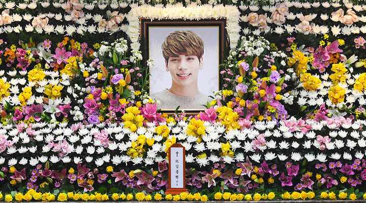 Asan Medical Center Funeral Home dipenuhi oleh para kerabat dan teman-teman mendiang Jonghyun yang masih sangat berduka. Sebagai pemimpin pemakaman, Onew, Minho, Key, dan Taemin dengan ditemani oleh keluarga Jonghyun serta Leeteuk, Lee Donghae, dan Eunhyuk Super Junior, mengantarkan peti Jonghyun ke dalam mobil jenazah.