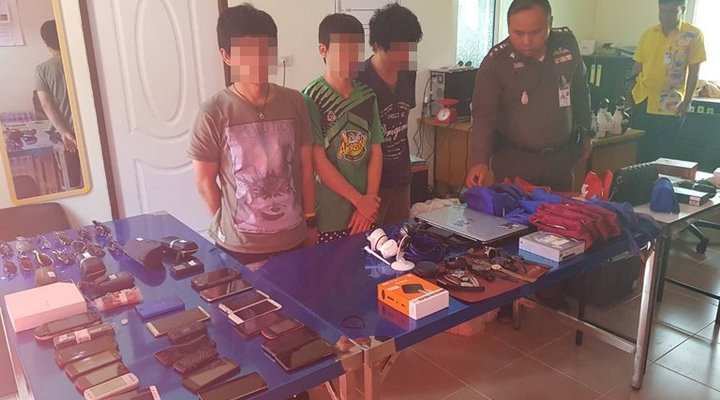 Tiga tersangka adalah Nirut Saksri, 29, Manot Nakpijit, 30, dan Chakrit Janprasert, 23, semuanya dari provinsi Phichit. Dari hasil penggeledahan di kediaman mereka, polisi menemukan lebih dari 100 item, termasuk komputer laptop, telepon genggam, jam tangan, kacamata hitam, perhiasan dan barang lainnya.