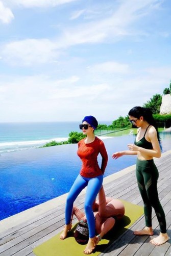 FOTO: Produktif Saat Liburan di Bali, Syahrini Sempatkan Yoga Bareng Sahabat