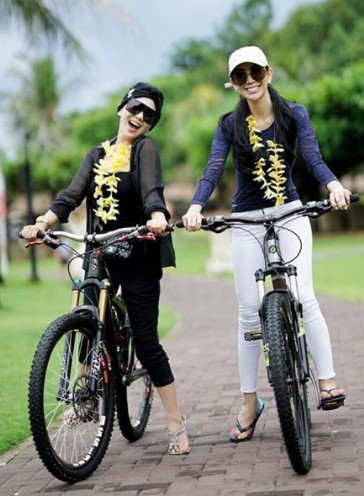 Saat di Bali, ia bersama sang sahabat Junita Liesar memulai pagi itu dengan bersepeda mengelilingi resort tempat ia menginap.