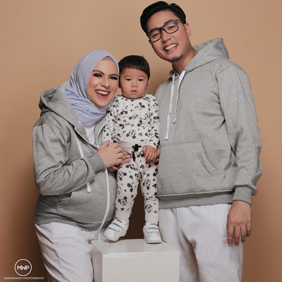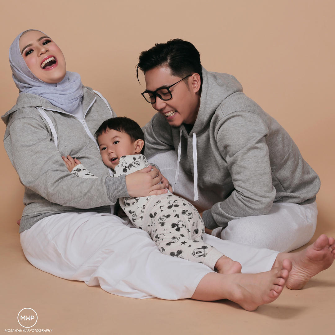 Tak ribet atau aneh-aneh, begini gaya kasual pemotretan Nycta Gina dan Rizky Kinos bareng buah hati mereka.