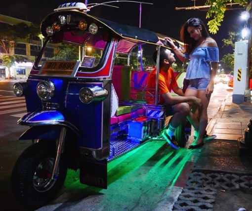 Ah, pasangan ini memang romantis. Tak perlu mewah untuk mengungkapkan cinta, cukup naik tuk tuk berdua sudah membuat keduanya bahagia rupanya...