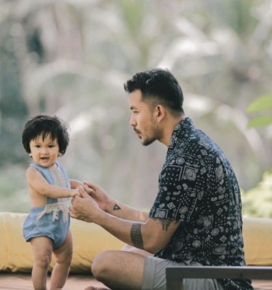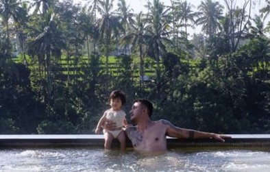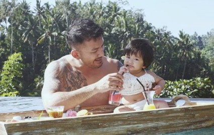 Begini gaya kece Rio Dewanto saat momong Salma di Bali...