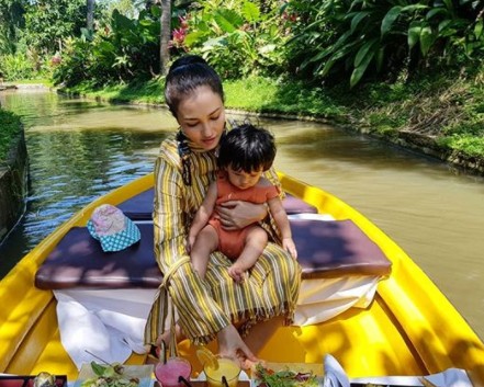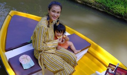 5. Atiqah Hasiholan Keliling dengan Perahu