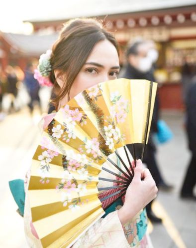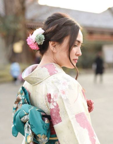 Melalui captionnya, bintang film "Eiffel I'm In Love" itu mengaku jatuh cinta dengan kimono, warnanya yang cantik membuatnya sangat senang bisa memakainya.