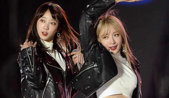 "Tidak! Itu adalah sesuatu hal yang tak seharusnya kita lakukan..." ujar Hani. Mendengar ucapan Hani itu, Hyerin pun menimpali, "Tapi pernah ketahuan sekali."