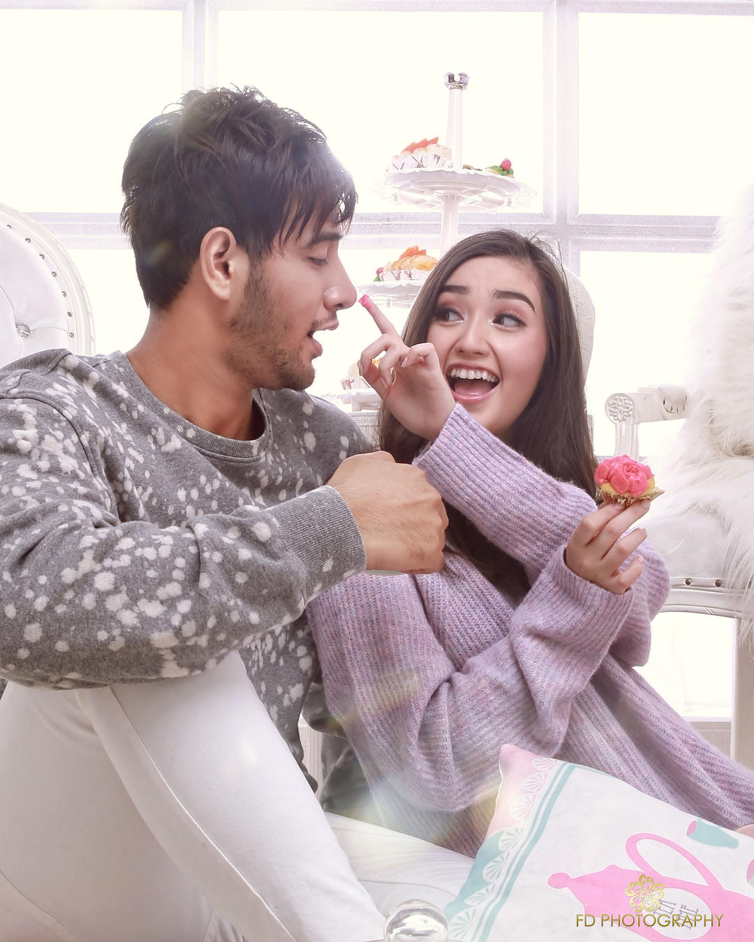 Pemotretan yang dilakukan di sebuah studio itu juga memberikan kesan ceria nan romantis bagi pasangan muda itu.