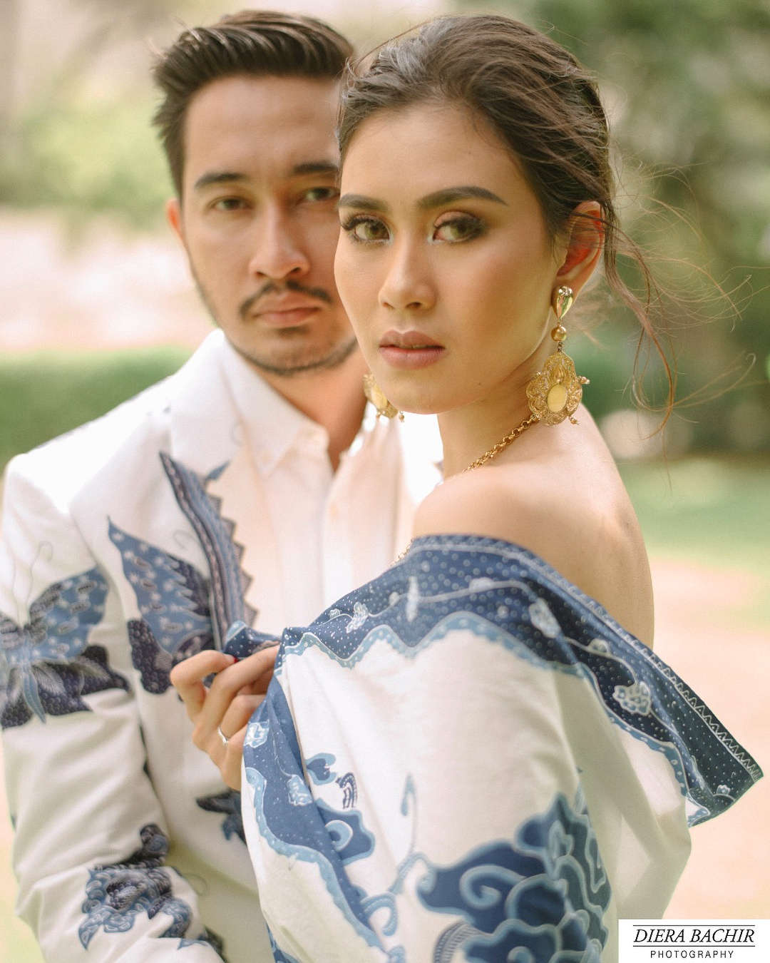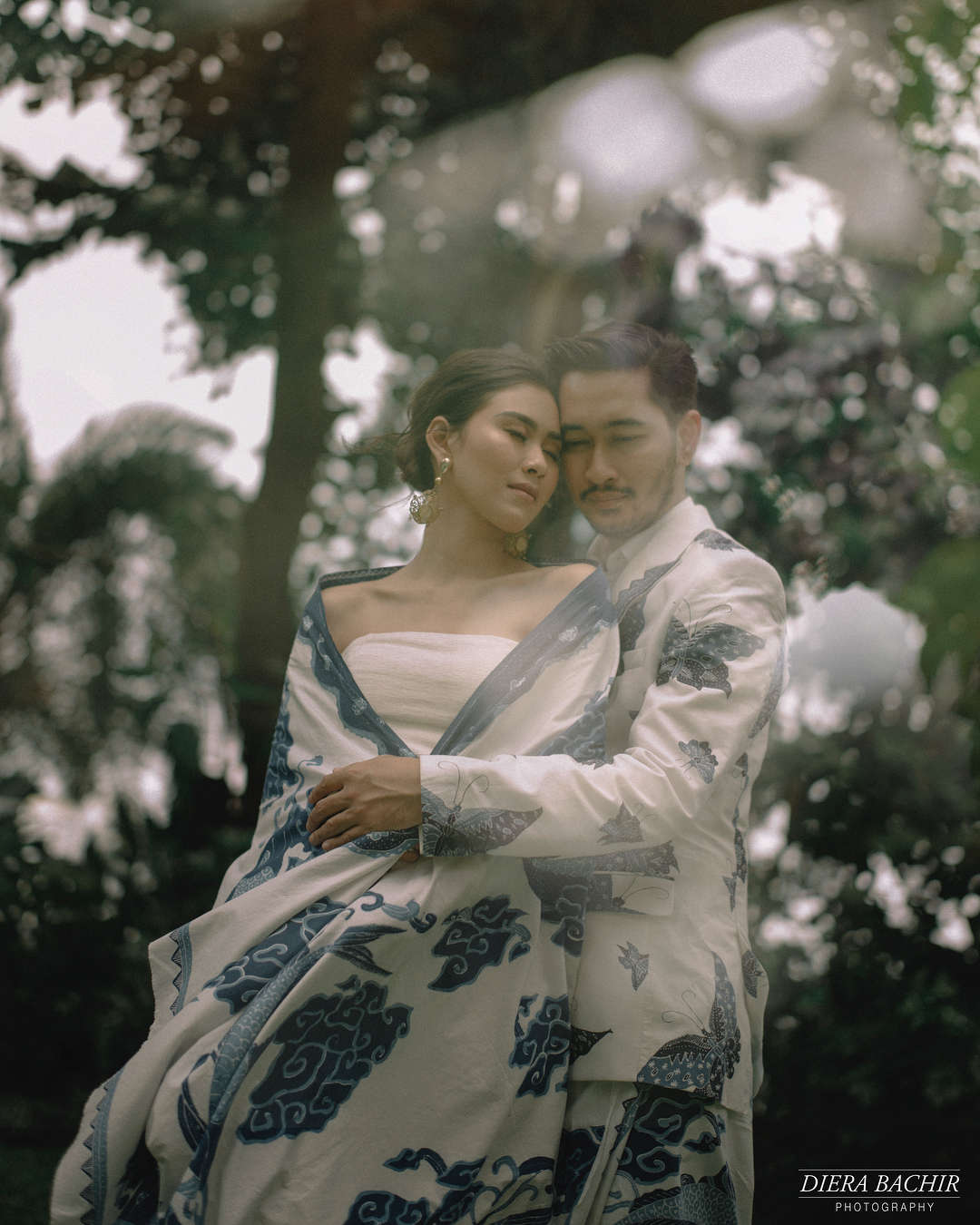 Keduanya menggandeng fotografer Diera Bachir dan mengangkat konsep Mega Mendung sebagai tema utama pre-wedding mereka.