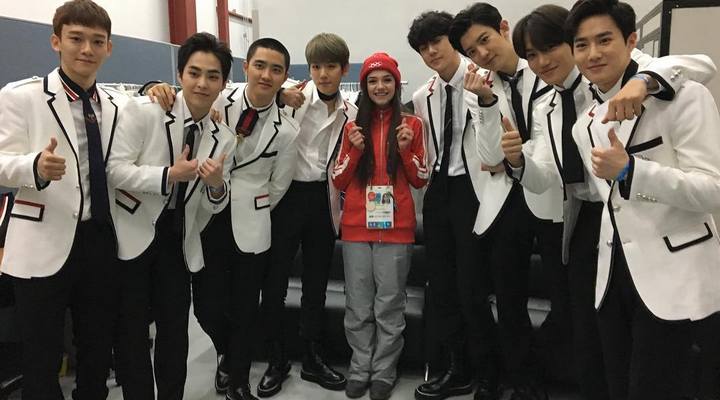 Wanita cantik itu kemudian memamerkan fotonya bersama EXO di akun Instagram pribadinya. Foto itu diambil pada Minggu, 25 Februari di penghujung acara penutupan Olimpiade Pyeongchang. EXO sendiri merupakan salah satu artis penampil yang hadir di upacara penutupan Olimpiade.