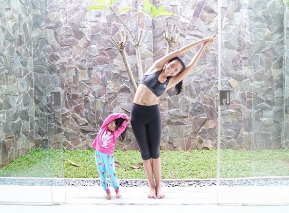 6. Lucunya Pose Yoga Liza Elly & Putri Semata Wayangnya