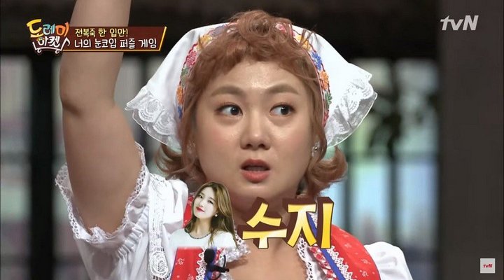 Sempat bingung, Park Na Rae menebak bahwa wajah selebriti yang diacak kali ini adalah milik Suzy, aktris film sekaligus serial TV yang bernaung di agensi JYP Entertainment. Kocak, ketika bagian-bagain wajah itu disatukan, ternyata foto itu justru menunjukkan wajah komedian Park Na Rae itu sendiri.