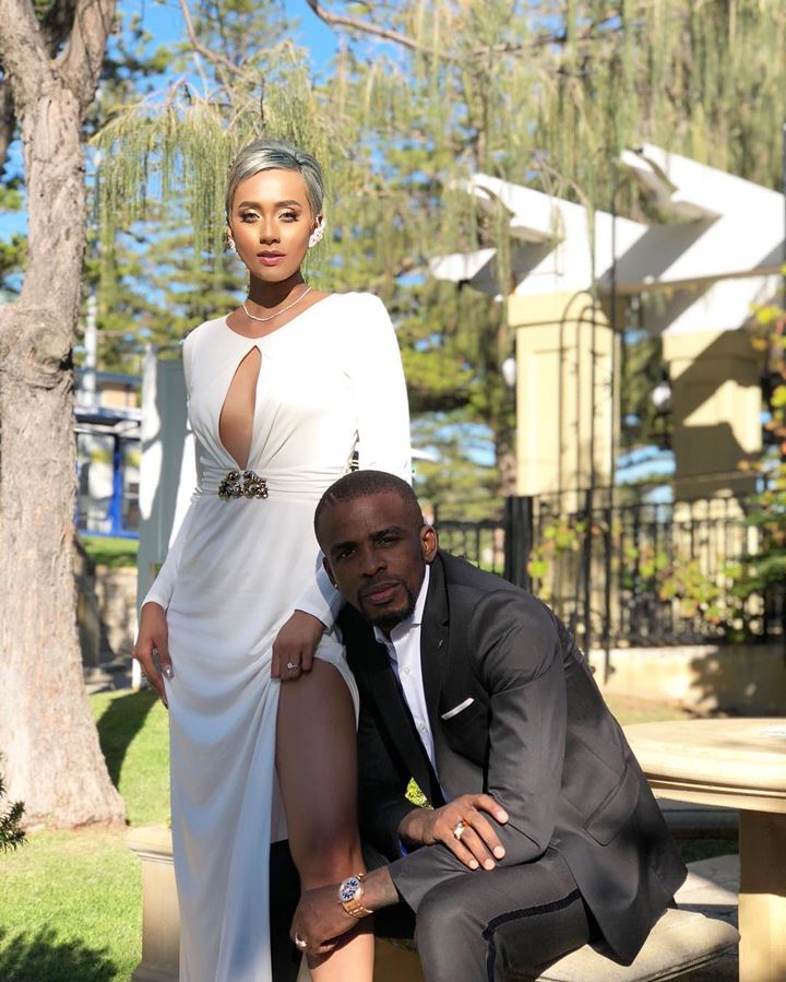 Kimmy tampak seksi saat berfoto bersama dengan suaminya, Greg. Ia mengenakan dress putih panjang dengan belahan di bagian dada dan kakinya.