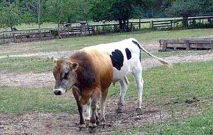 Jika dilihat sekilas, foto ini seperti seekor sapi yang memiki dua warna berbeda di bagian tubuh depan dan belakangnya ya. Tetapi saat di perhatikan, bagian kepala sapi putih tersembunyi di balik sapi cokelat.