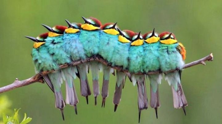 Barisan burung cantik yang sedang bertengger di pohon ini tampak seperti seekor ulat bulu. Apalagi mereka memiliki warna yang sama persis.