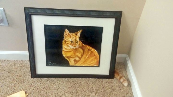 Lukisan satu ini terlihat biasa saja. Namun, coba perhatikan lebih dekat, ada ekor kucing yang menyembul keluar.