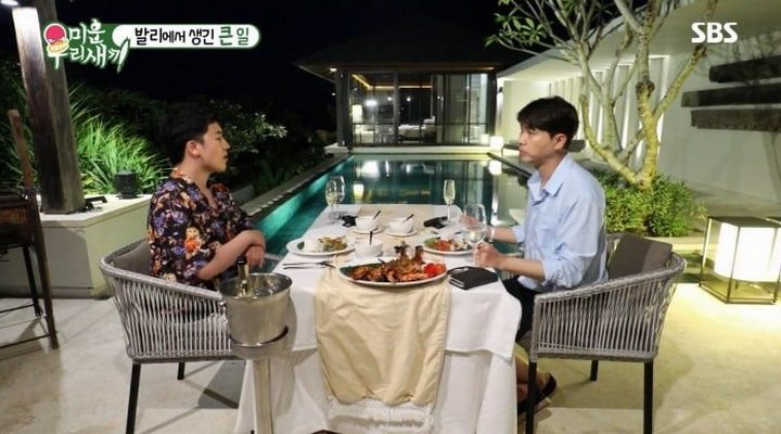 Setelah menikmati pool party bersama, mereka pun pergi untuk makan malam. Melihat sajian yang dihidangkan di atas meja, Park Soo Hong pun terlihat sangat takjub.